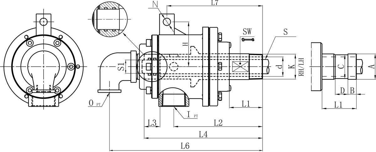 Model K I O S1 d L1 L2 L3 L4 L6 L7 N H SW 法蘭式外管尺寸對(duì)照表