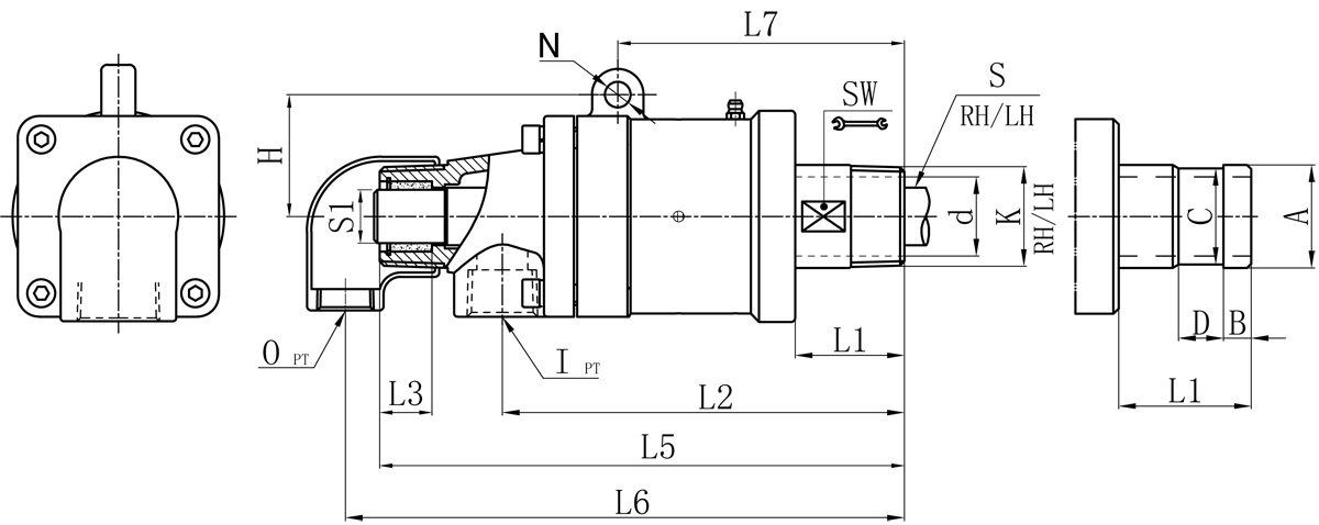 | Model | K | I | O | S1 | d | L1 | L2 | L3 | L5 | L6 | L7 | N | H | SW | 法蘭式外管尺寸對(duì)照表 | |||
