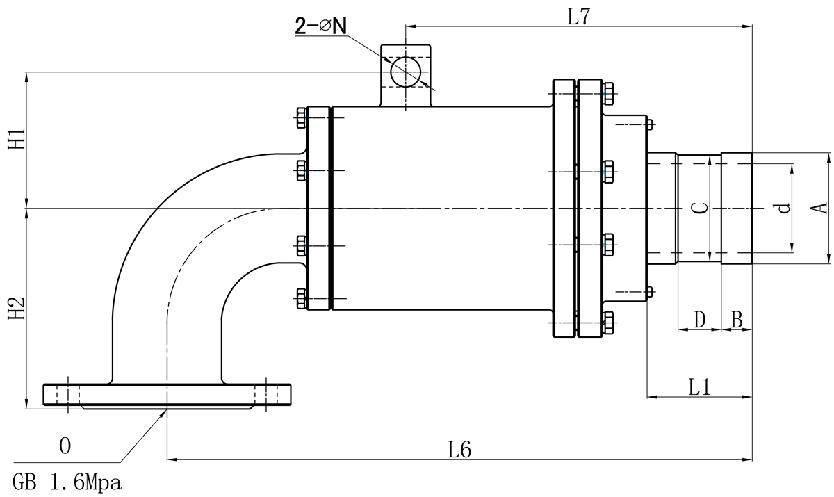 Model O d L1 L6 L7 N H1 H2 法蘭式外管尺寸對(duì)照表
