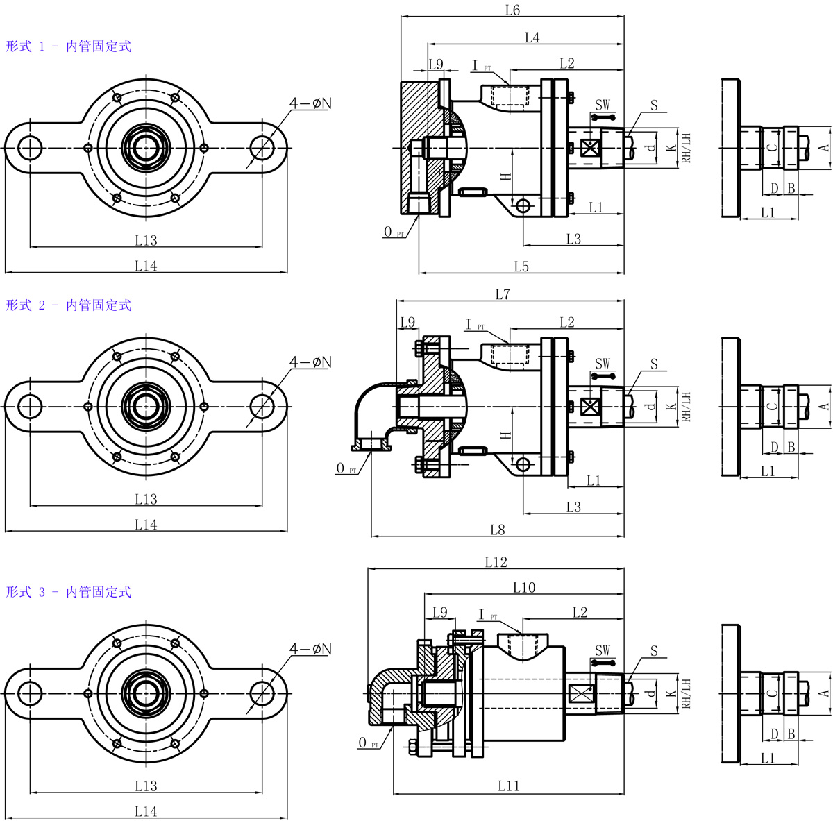 | Model | K | I | O | S | d | L1 | L2 | L3 | L4 | L5 | L6 | L7 | L8 | L9 | L10 | L11 | L12 | L13 | L14 | N | SW | H | 法蘭式外管尺寸對(duì)照表 | |||