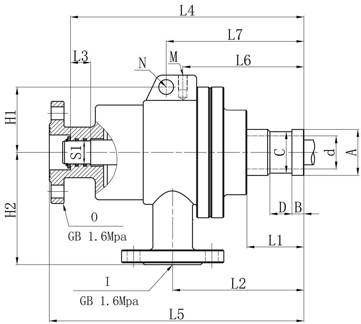 | Model | I | O | S1 | d | L1 | L2 | L3 | L4 | L5 | L6 | L7 | N | M | H1 | H2 | 法蘭式外管尺寸對照表 | |||